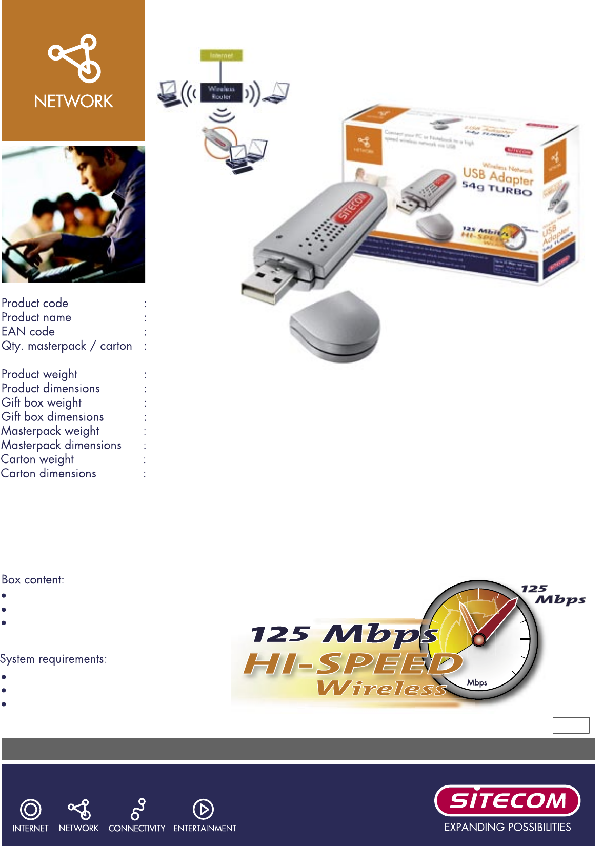 With the Wireless Network USB Adapter you can establish a connection with any 2.4 GHz compatible wireless network. The USB